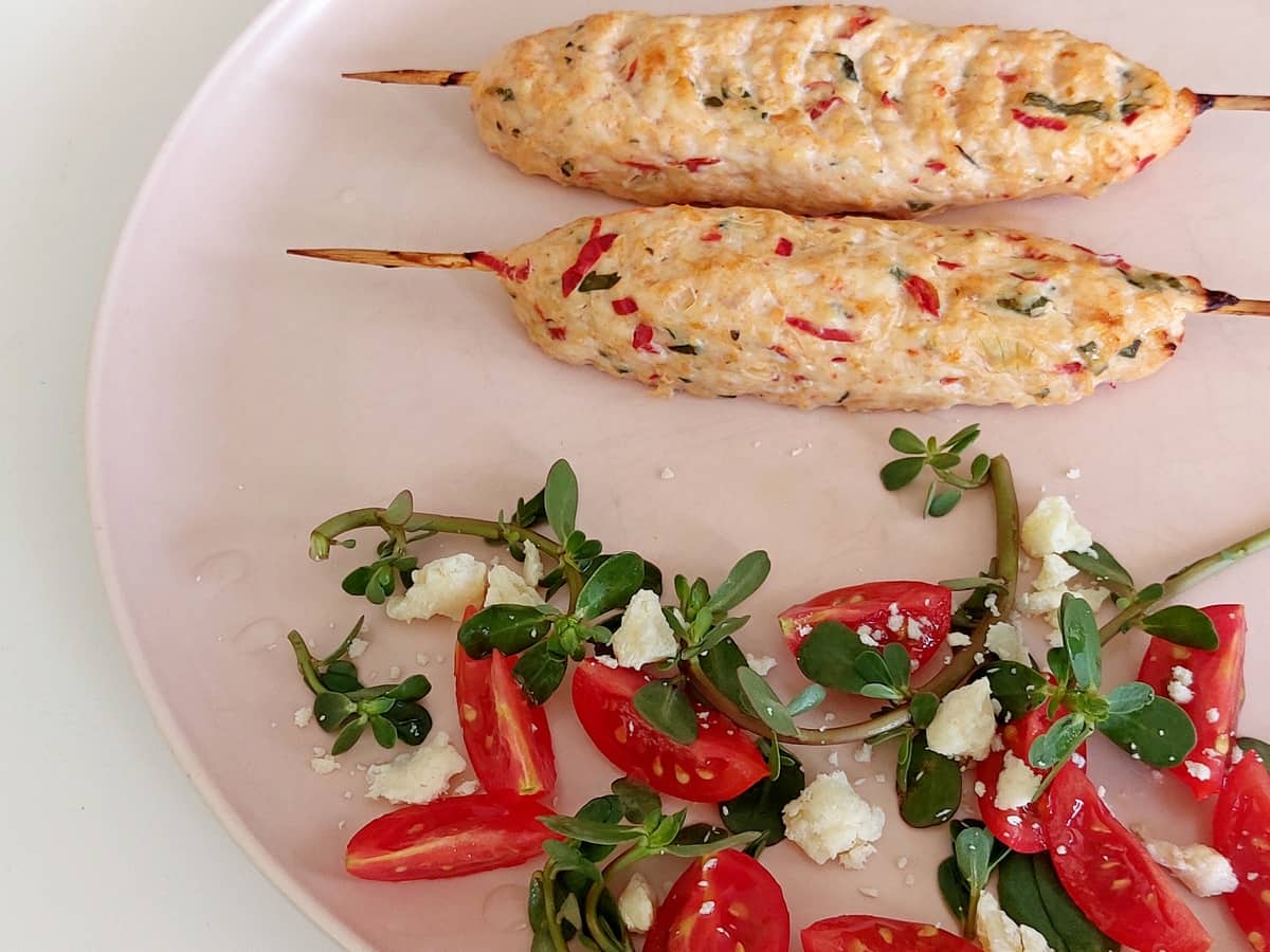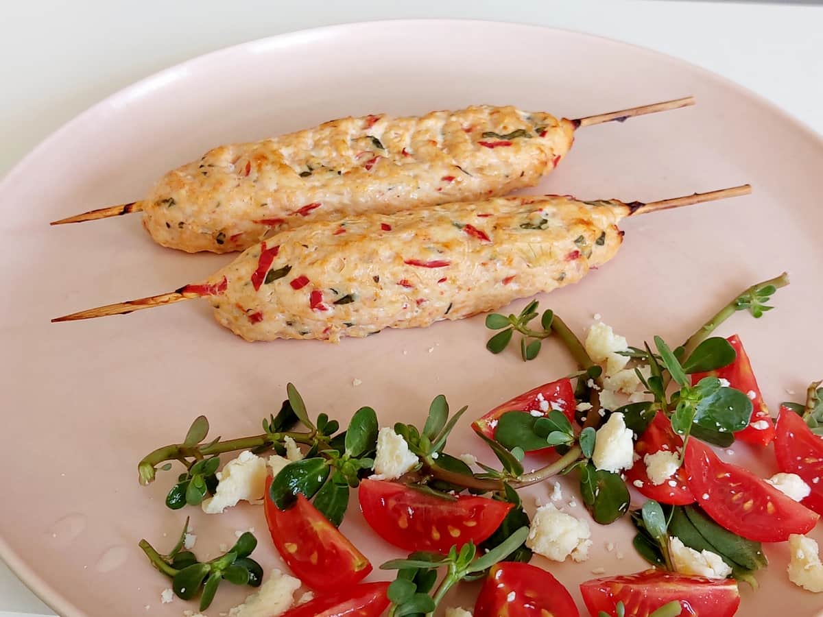 Кроме хлопьев чили можно добавить немного измельченного свежего острого перца. На поверхности колбасок с помощью ложки можно сделать небольшие поперечные бороздки. На вкус это никак не влияет. Кебабы можно нанизать на металлические шампуры и поджарить на гриле по 6 минут с каждой стороны. Если нет металлических шампуров, можно обернуть фальгой 4 сложенные вместе деревянные шпажки, чтобы получился более широкий плоский шампур.