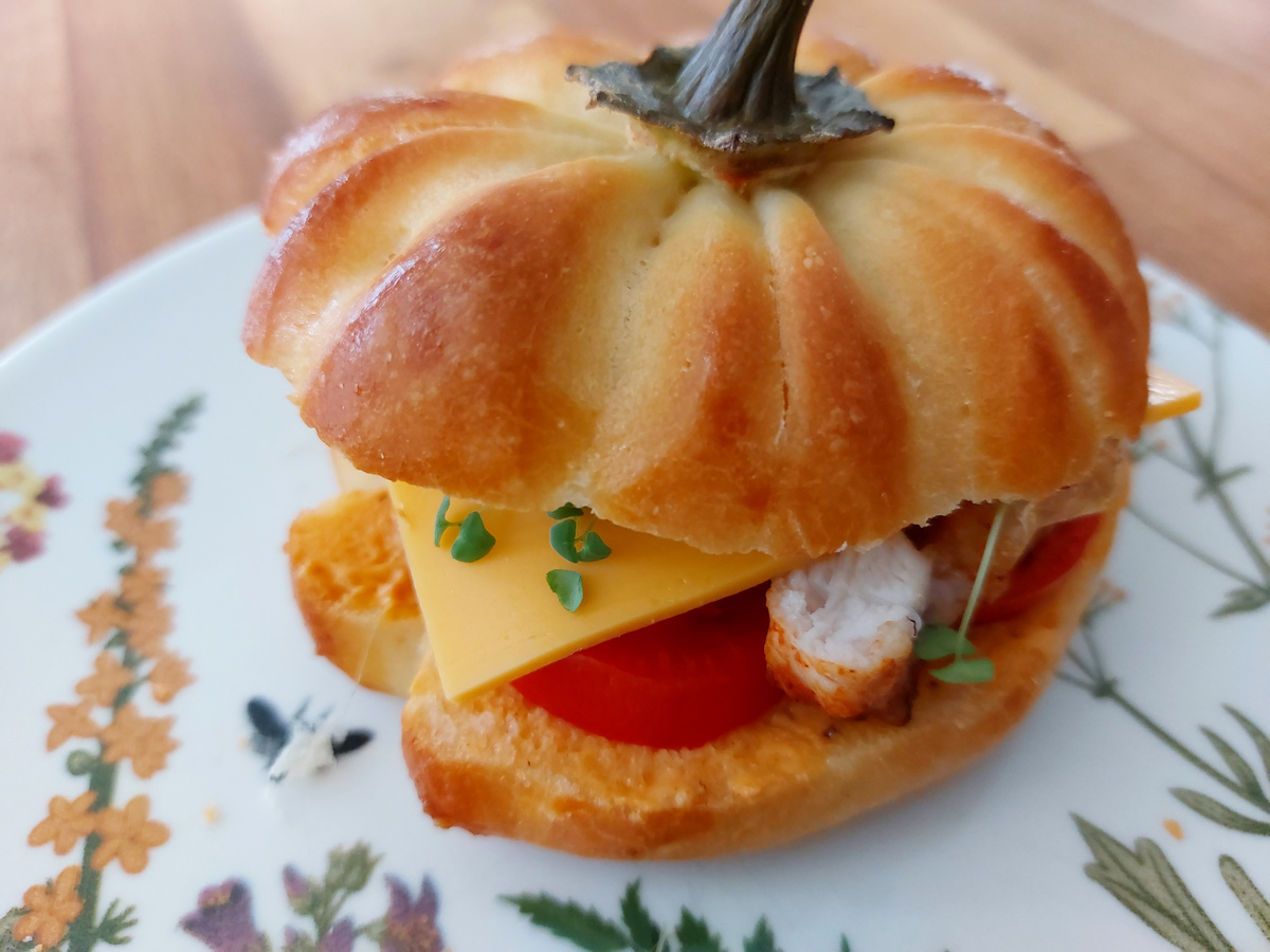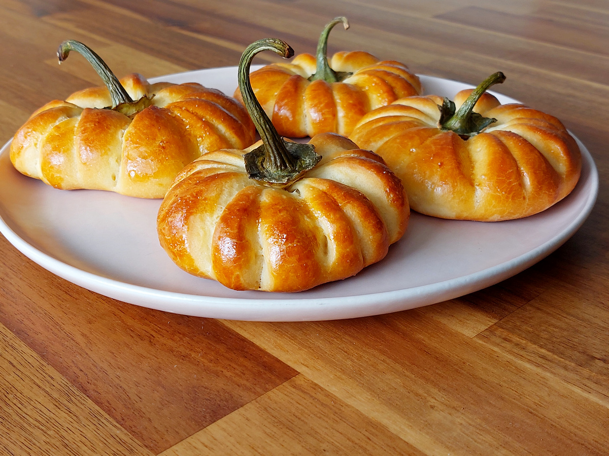 Время выпечки выбирайте в зависимости от мощности духовки. Такие булочки в форме тыквы можно использовать для бургеров на вечерниках во время Хэллоуина.