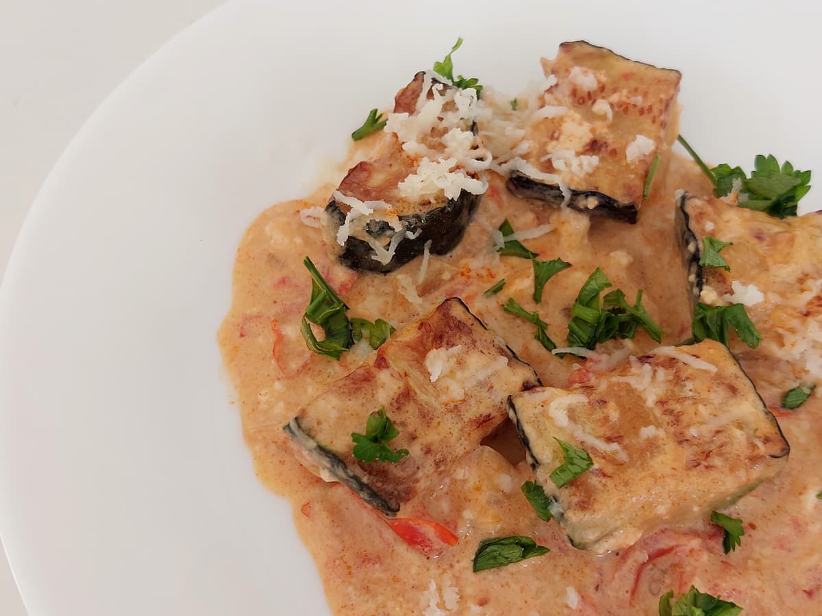 9. Выложить Marry Me цукини на тарелку, посыпать нарезанной зеленью и тертым сыром пармезан.