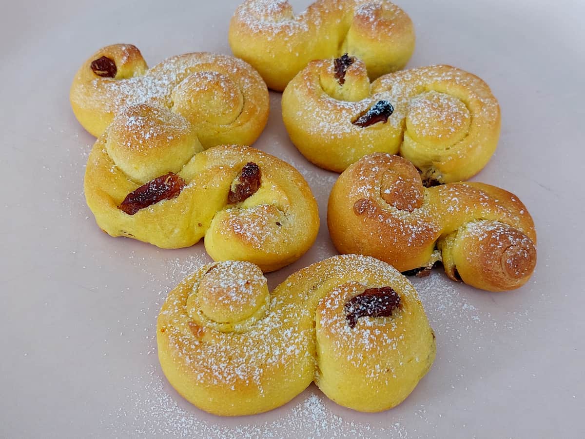 - Выложить мини Луссекатт на противень, застеленный бумагой для выпечки и оставить подниматься на 30 минут.