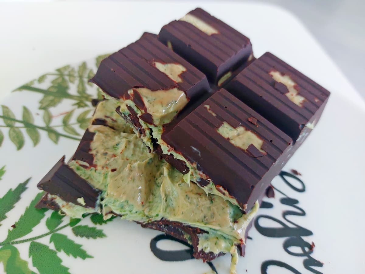 - Добавить все листья мяты к сливкам и шоколаду, хорошо пробить блендером до однородной массы.