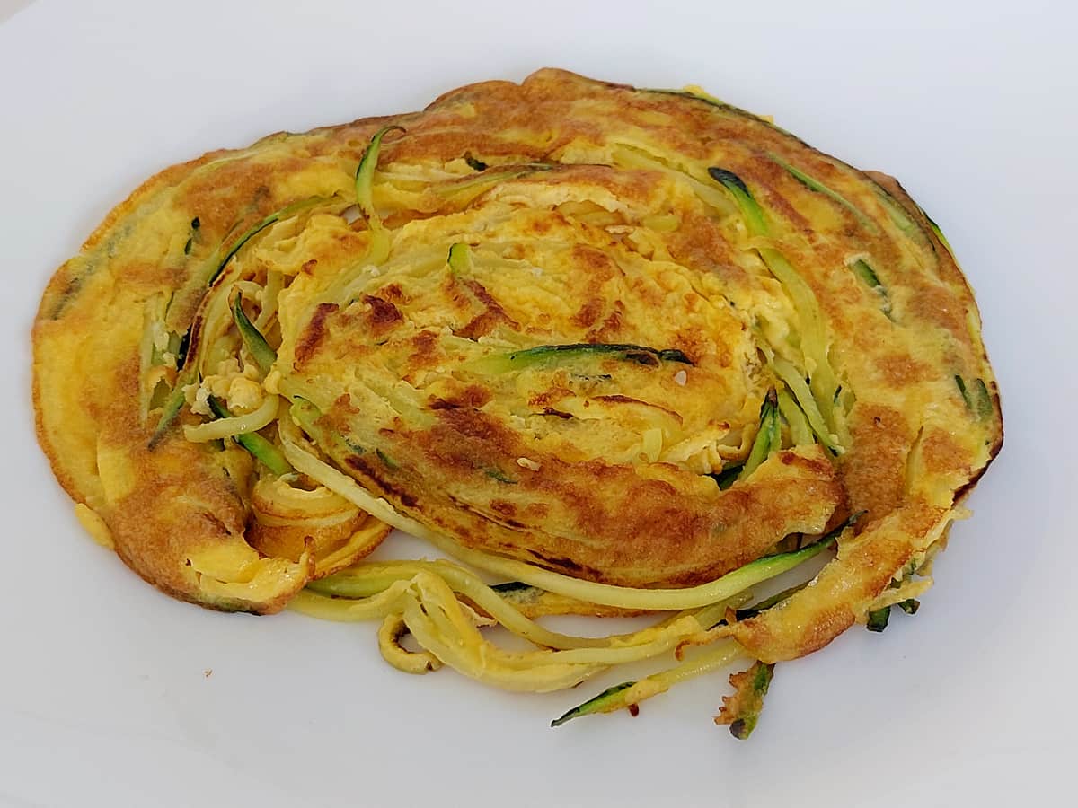- Аккуратно вылить яйца на спираль из цуккини, жарить 5 минут.