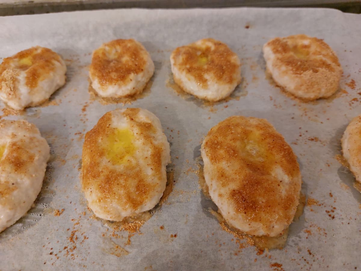 - Сформировать из фарша котлеты, выложить на противень, застеленный бумагой для выпечки.