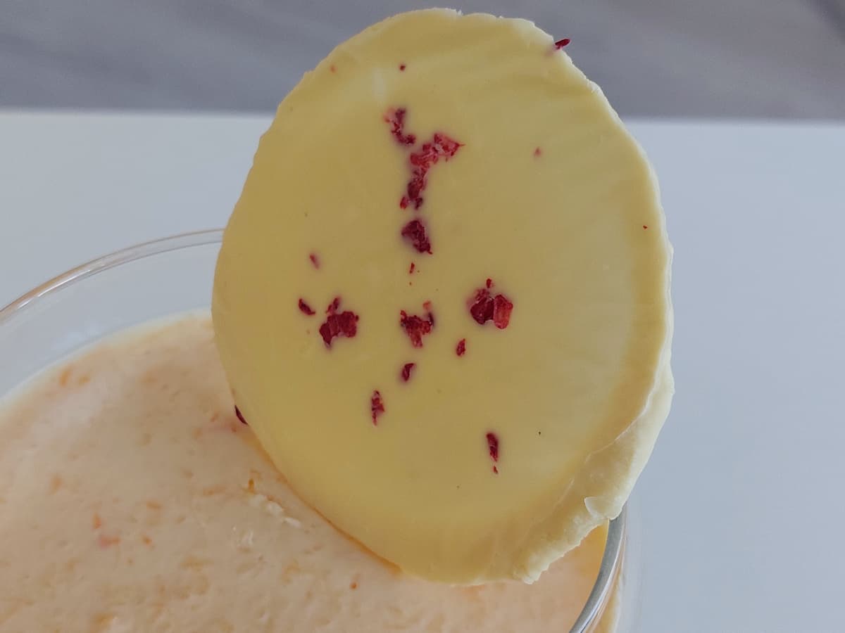 - Снять полиэтилен, отделить шоколадный декор от коврика и использовать для украшения муссов, пирожных и тортов.