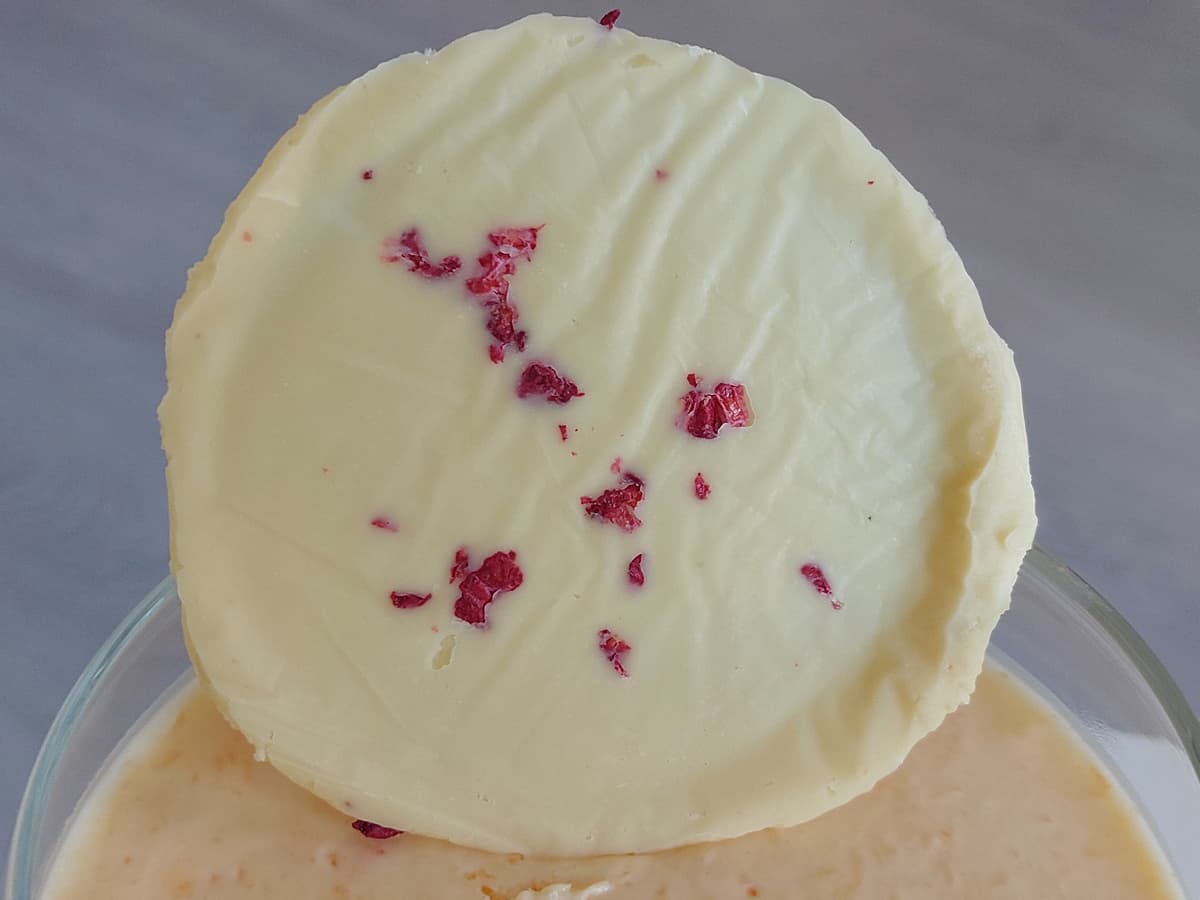 - Выложить небольшие кружки растопленного шоколада на силиконовый коврик на достаточном расстоянии друг от друга, посыпать каждый крошкой милины.